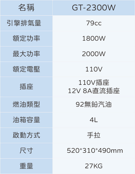 【TAIWAN POWER】清水牌GT-2300W 汽油靜音變頻發電機 官方售價$35,800元